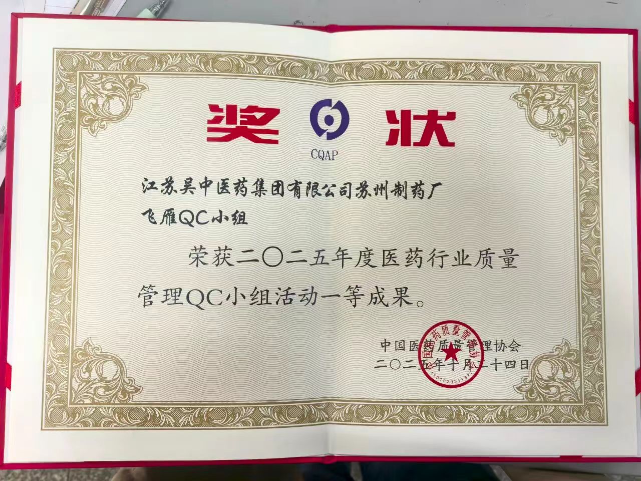 展望未来,吴中医药苏州制药厂将在QC小组活动现有成绩基础上,深化质量管理创新实践,完善质量管理体系,通过技术与管理创新双轮驱动,为医药行业高质量发展贡献“吴中方案”与“吴中智慧”。企业将坚持质量立企理念,以优质产品和完善服务履行社会责任,为守护群众生命健康贡献更大力量。